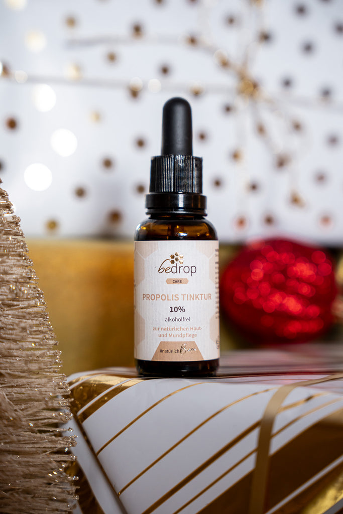 El propóleo es el producto de las abejas que mantiene la colmena estéril y sana. Podemos utilizarlo tanto para nuestro bienestar como para el cuidado de la piel. Si tus seres queridos padecen neurodermatitis o acné, por ejemplo, la tintura de propóleo es un remedio rápido para las estaciones frías. Al mismo tiempo, proporciona un apoyo natural para el bienestar y la nariz fría.