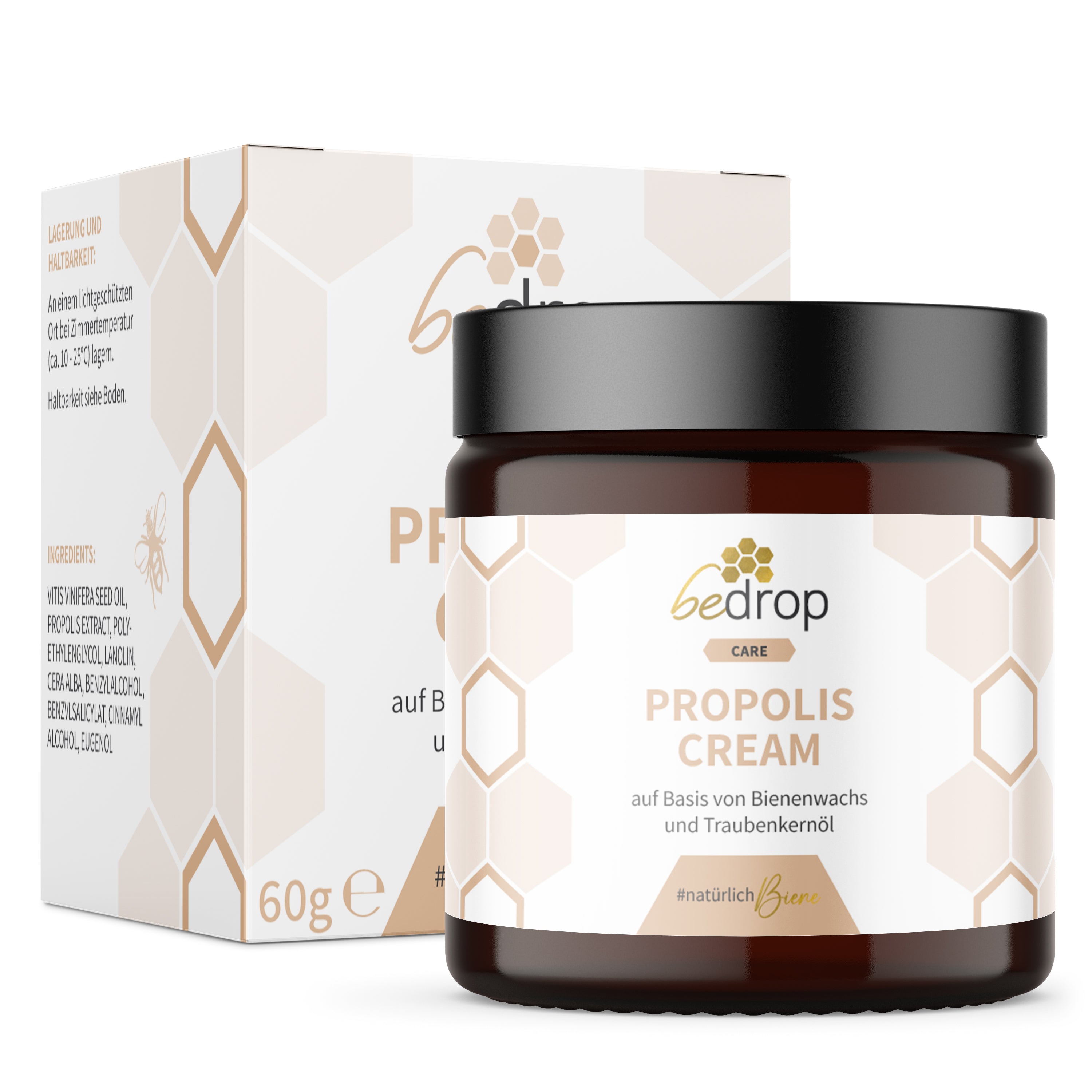 Bienenwachs ist ein natürliches Bienenprodukt, welches reich an natürlichen Fetten ist und somit als Basis in vielen Kosmetika verwendet wird. Geringe Mengen an Bienenwachs sind ausreichend, um Cremes oder Salben zu einer geschmeidigen Konsistenz zu binden. Die im Bienenwachs enthaltenen Nährstoffe verleihen der Haut eine geschmeidige und pflegende Eigenschaft. In Kombination mit Propolis kann das Bienenwachs eine antioxidative Wirkung aufweisen. Wir haben in der Propolis Cream hochdosiertes Propolis Extrakt mit Bienenwachs vereint, um die Wirkung beider Produkte gegenseitig zu unterstützen und Deiner Haut eine natürliche Hautpflege zu verleihen.